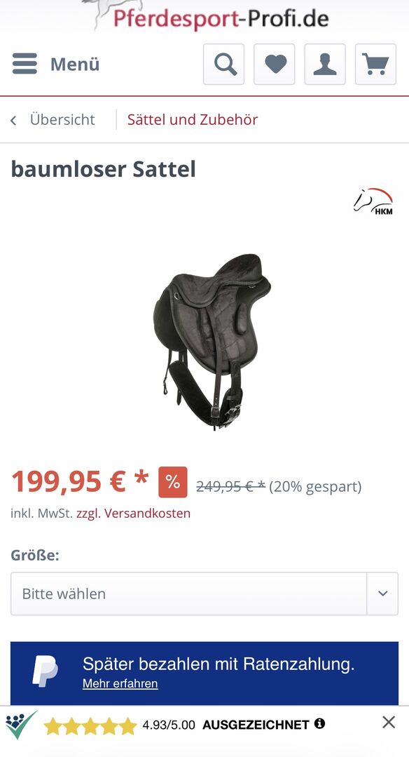 Verkaufe diesen baumlosen Sattel da er leider nicht Optima zu uns passt. Lag 3-4 mal auf dem Pferd also wie neu. Inklusive Steigbügelriemen und Steigbügel