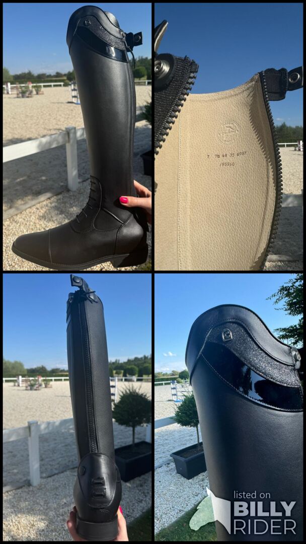 Gefertigt aus Soft Calf, bietet das atmungsaktive Rindsleder Flexibilität und eine natürliche Haptik. Das herausnehmbare, anatomische Fußbett passt sich perfekt an die Fußform an, während das Steigbügel Relief im Absatz für zusätzliche Stabilität sorgt. Mit ihrem slim fit Design bieten diese Stiefel eine elegante Silhouette und einen eng anliegenden, komfortablen Sitz. Der gepolsterte Fersenschutz mit Anziehfunktion erleichtert das An- und Ausziehen, und der Sporenschutz mit zwei Sporenhaltern bietet zusätzlichen Schutz. Die Innenseite aus Haftleder sorgt für optimalen Halt im Sattel.