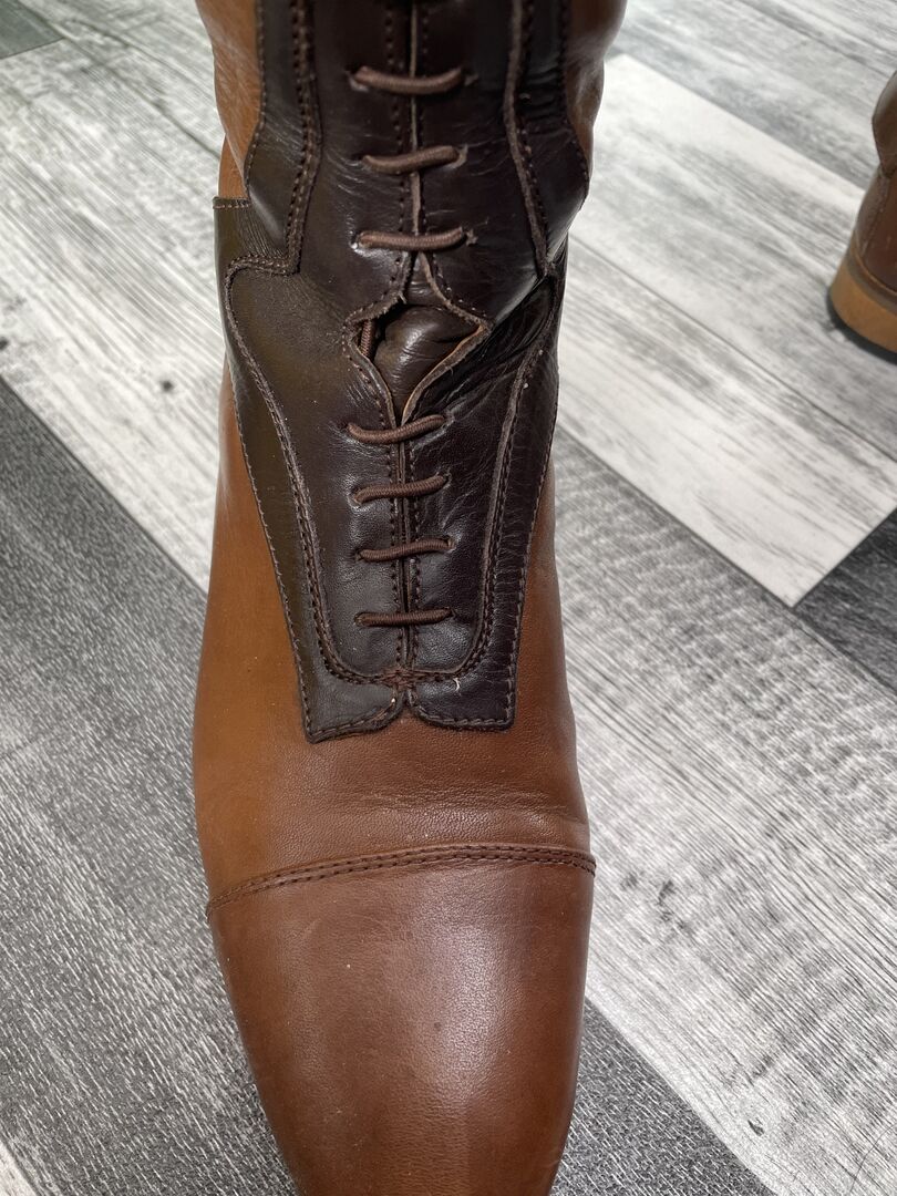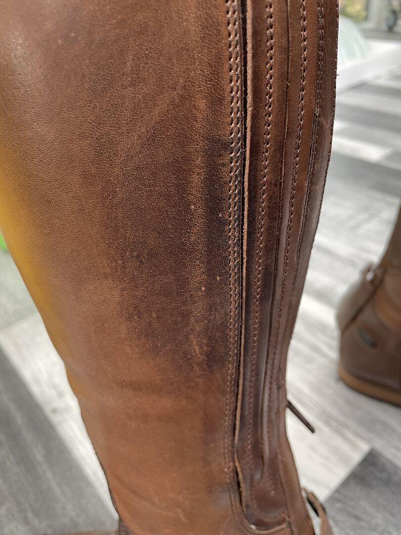 Von Loesdau, als B- Ware für 149,- gekauft, nur zwei Mal getragen, sind mir zu eng. „Mängel“ siehe Bilder. Durchgehender Reißverschluss mit Elastik. Größe 39, Höhe 46 cm, Wade 38 cm