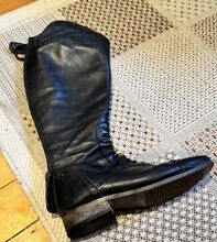 Länge 52 außen am Bogen, 43 innen. Breite 40 an der Wade. Dehnbar durch nachträgliche Gumminaht. Sehr gut erhalten!