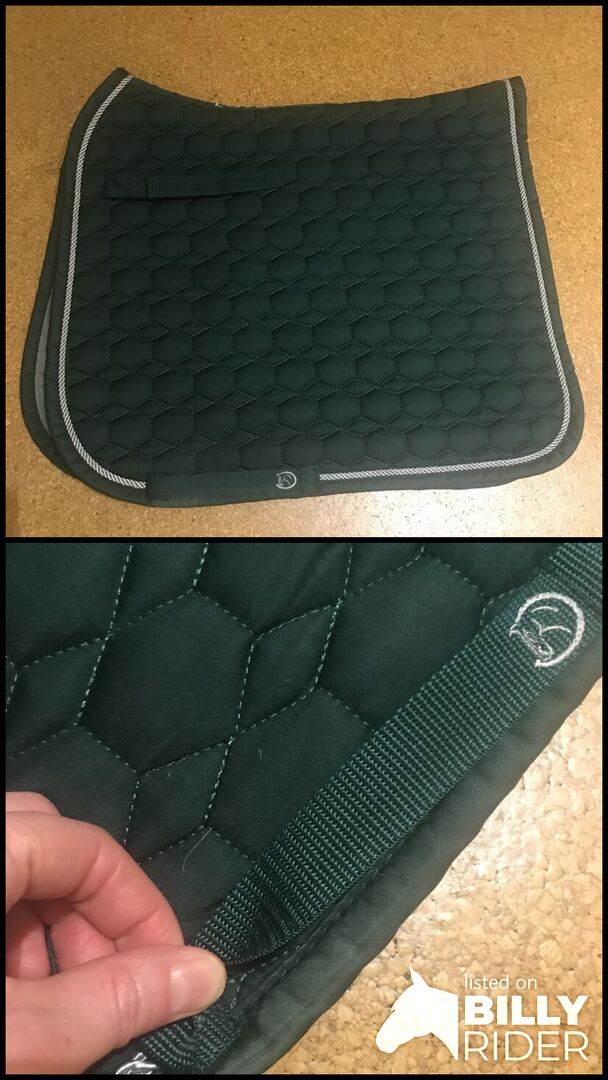 Ich verkaufe hier eine wenig genutzte, dunkelgrüne Dressurschabracke mit silberner Biese. Die Schabracke ist selten genutzt und daher top in Ordnung, lediglich an der Stelle der Gurtstrupfen befinden sich minimale, kaum sichtbare Abnutzungsspuren (Siege Bild) Versendet wird frisch gewaschen, leider hängen dennoch ein paar Haare drin. Preis plus Wunschversand Privatverkauf, daher keine Garantie oder Rücknahme. Schaut gerne in meine anderen Anzeigen, um eventuell Versand sparen zu können.