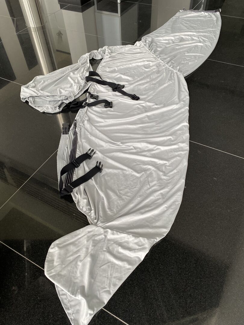 Die Decke ist unbenutzt, damit sind keine Pferdehaare auf der Decke, oder Abnutzungen oder Risse zu sehen. Ist in absolut neuwertigen Zustand. In Größe 8 - entspricht Rückenlänge 145 - 155 cm.