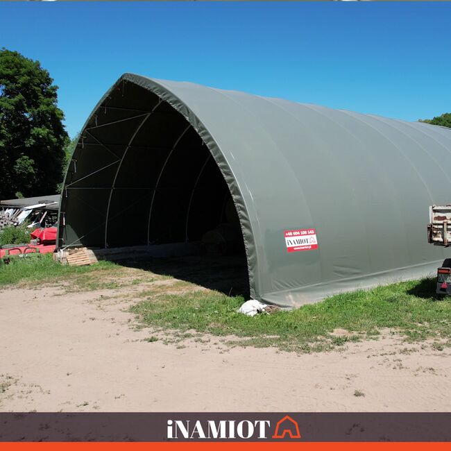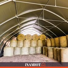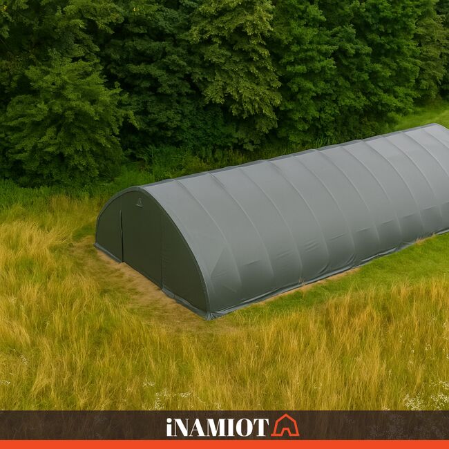 Vorteile auf einen Blick: starke PVC-Plane 900 g/m², UV-Schutz 50+, hohe Reißfestigkeit, stabile verzinkte Stahlkonstruktion, große Nutzfläche, Rundbogenform für besseren Ablauf von Regen und Schnee, zwei große Eingangstore, schnelle Montage, mobil und flexibel einsetzbar, ideal für Heu, Stroh, Futtermittel, Maschinen, Fahrzeuge und Lagerwaren. Die Konstruktion ist für Windgeschwindigkeiten bis 80 km/h ausgelegt.