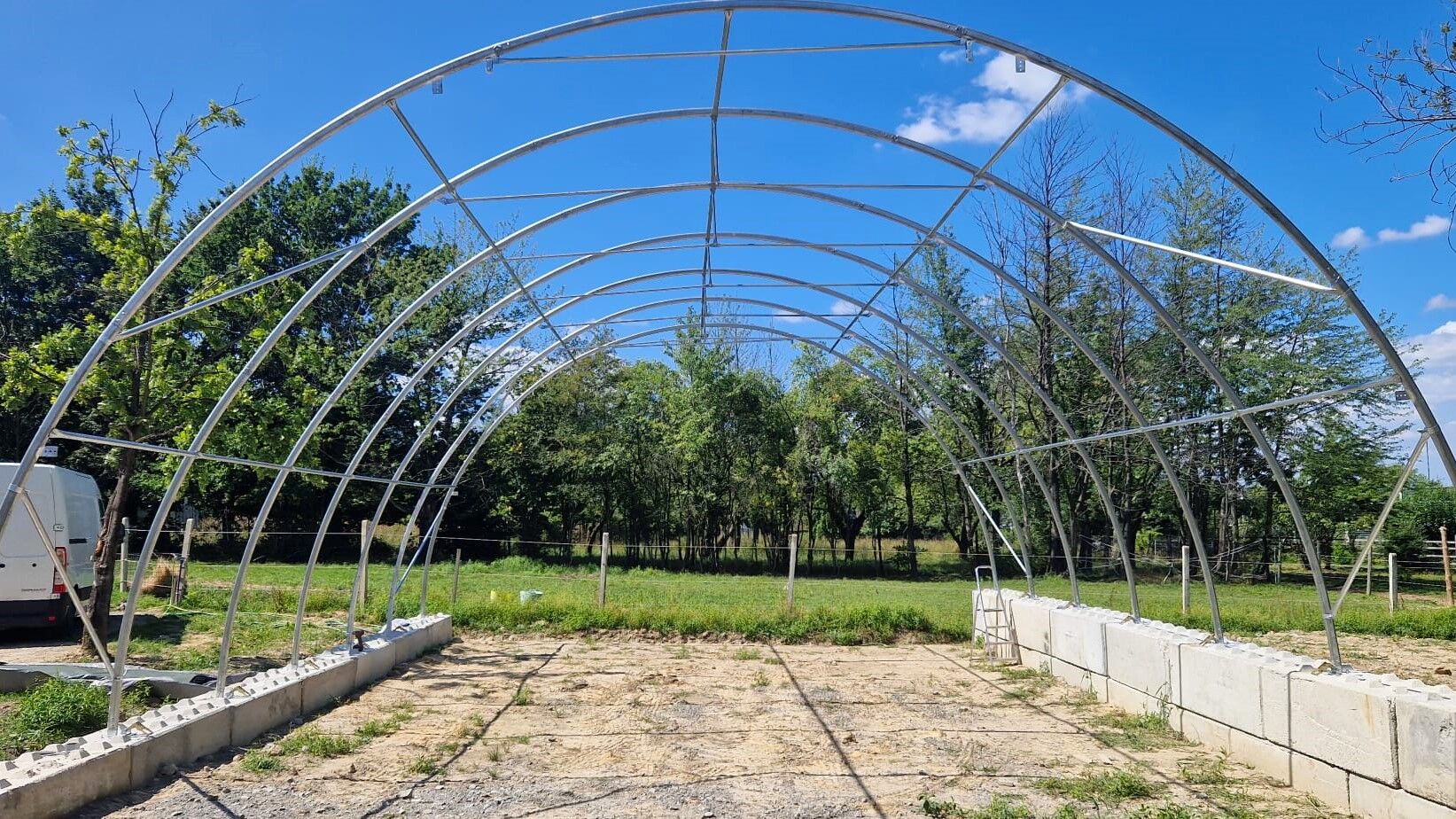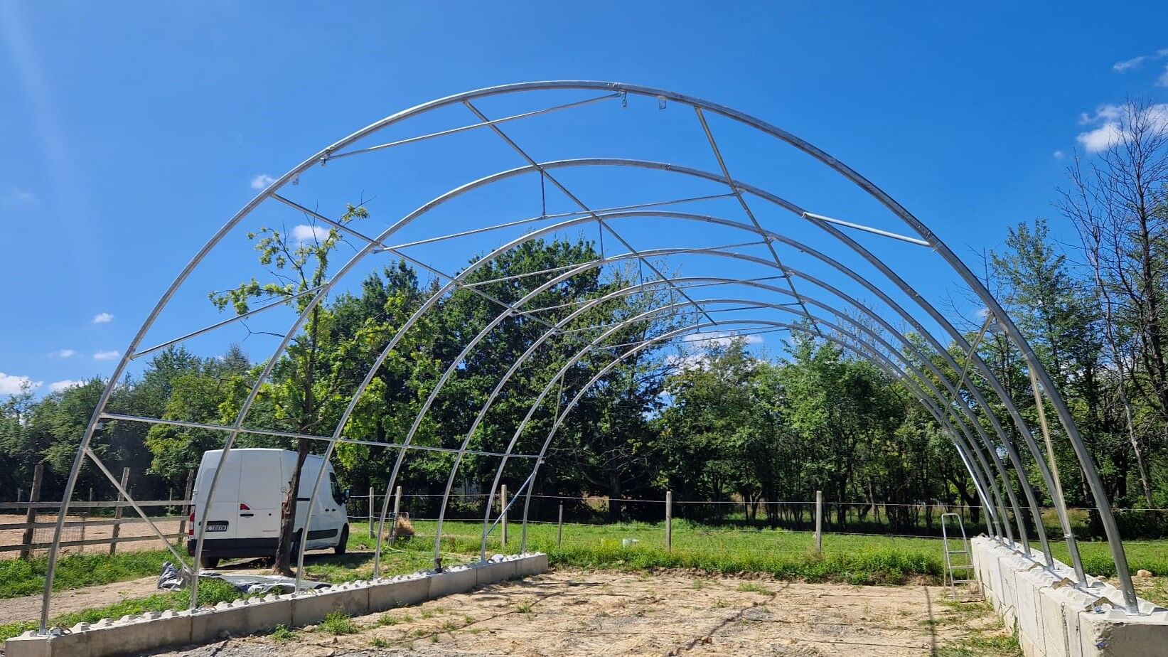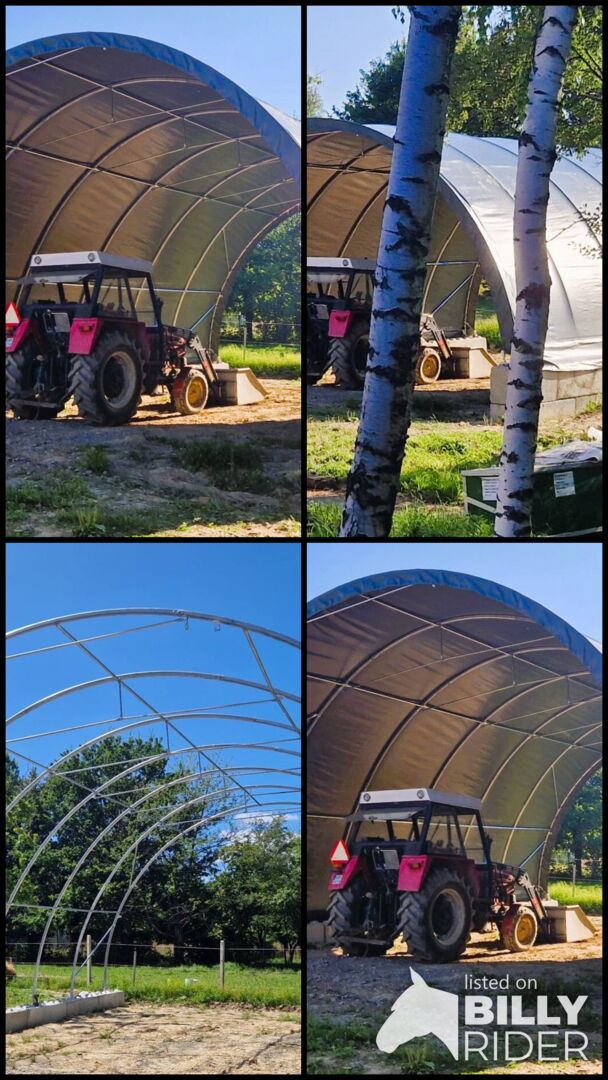 Mit einer Breite von 9,15 m, einer Länge von 10,00 m und einer Höhe von 4,50 m bietet diese Rundbogenhalle viel nutzbaren Raum auf kompakter Fläche. Zwei Eingangstore mit einer Öffnung von 3,50 x 3,50 m ermöglichen bequemes Ein- und Ausfahren sowie eine komfortable Nutzung im täglichen Betrieb. Dadurch eignet sich die Halle sehr gut als Lager für Ballen, Futter, Maschinen, Anhänger, kleinere Traktoren oder als geschützter Arbeitsbereich.