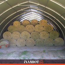 Vorteile auf einen Blick: starke PVC-Plane 900 g/m², UV-Schutz 50+, hohe Reißfestigkeit, stabile feuerverzinkte Stahlkonstruktion, keine Innenstützen – 100 % nutzbarer Innenraum, gebogene Dachform für besseren Ablauf von Regen und Schnee, zwei große Eingangstore, schnelle Montage, mobil und flexibel einsetzbar, ideal für Heu, Stroh, Futtermittel, Maschinen, Geräte und Lagerwaren.