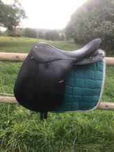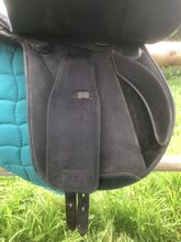 Sattel der Marke Wintec. Es handelt sich um das Modell Pro Trekking mit mittlerer/normaler Kammerweite (30cm). Er hat mehrere Ringe als Befestigungmöglichkeiten und lange Trachten für eine große Auflagefläche, passt aber auf Ponys mit kurzem Rücken und wiegt nur circa 5kg. Die Kniepauschen sind per Klett verstellbar und die Steigbügelriemen lassen sich über oder unter dem Sattelblatt verschnallen.
