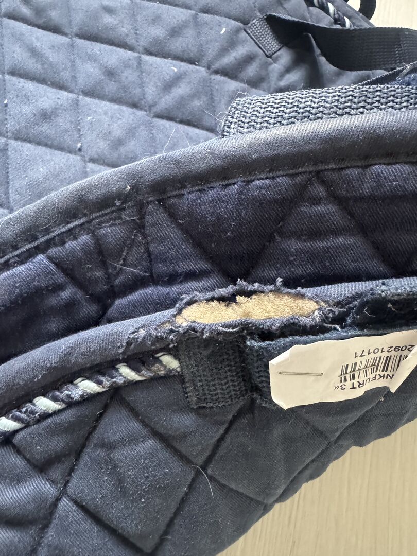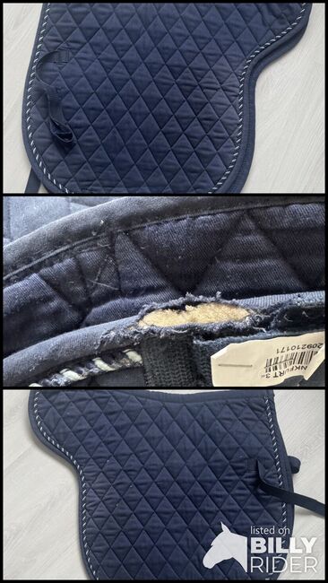 Biete eine Satteldecke in Dunkelblau an. Gebrauchsspuren wie auf de Bildern, beeinträchtigt aber nicht die Nutzung. Privatverkauf daher keine Garantie oder Rücknahme. Versand gegen Kostenübernahme möglich.