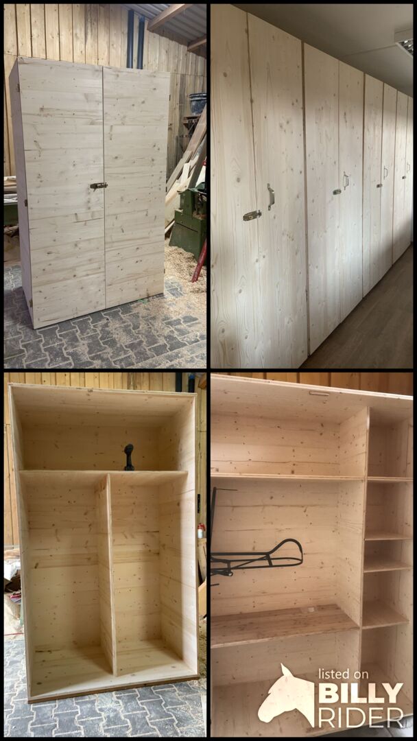 Ich biete individuelle und auf Wunsch gefertigte Sattelschränke an. Die Schränke werden aus massiven Holzplatten gefertigt. Es handelt sich hierbei um 3 - Schichtplatten aus Fichte. Auf Wunsch gibt es noch Lärche, Eiche und Altholzplatten. Die Maße des Schrankes sowie die innenaufteilung ist frei Wählbar. Jeder Schrank ist ein Unikat und wir Speziell auf deine Wünsche gefertigt. Freue mich auf deine anfrage.
