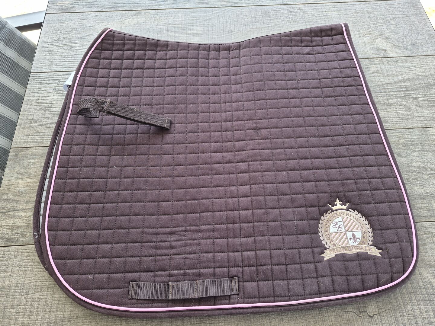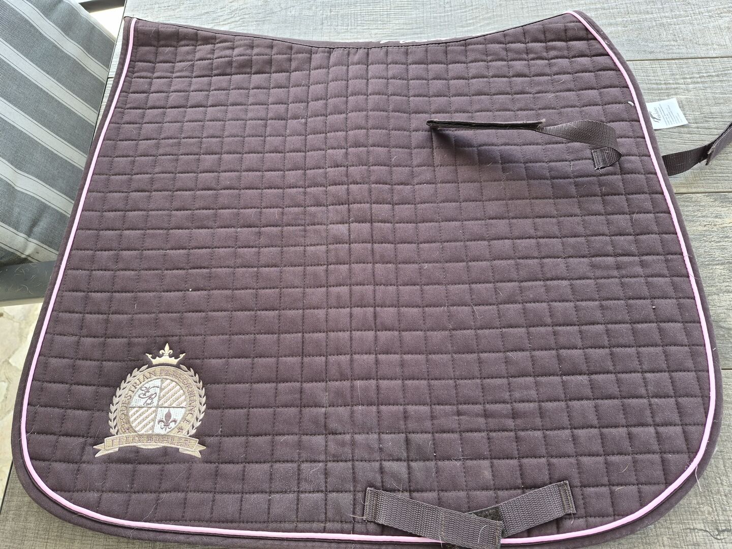 Ich gebe eine gut erhaltene, dunkelbraune Schabracke von Felix Bühler in der Größe WB Dressur ab.