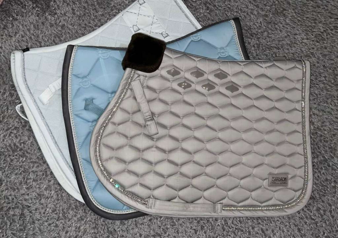 - Eskadron Platinum Schabracke Glossy Crystal Grey, VS (leichte Gebrauchsspuren bei dem Klettverschluss) Gekauft für 80€, verkaufe für 60€ - Eskadron Pure Schabracke Mesh Stripe Weiß, DL (leichte Gebrauchsspuren siehe Bild) Gekauft für 80€, verkaufe für 40€ - Equestrian Stockholm Schabracke Ice Blue, PD (komplett neu) Gekauft für 90€, verkaufe für 70€