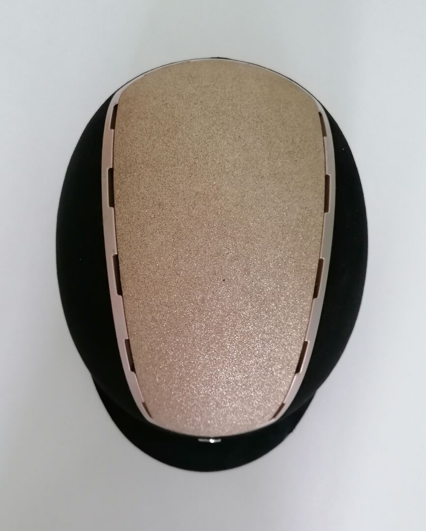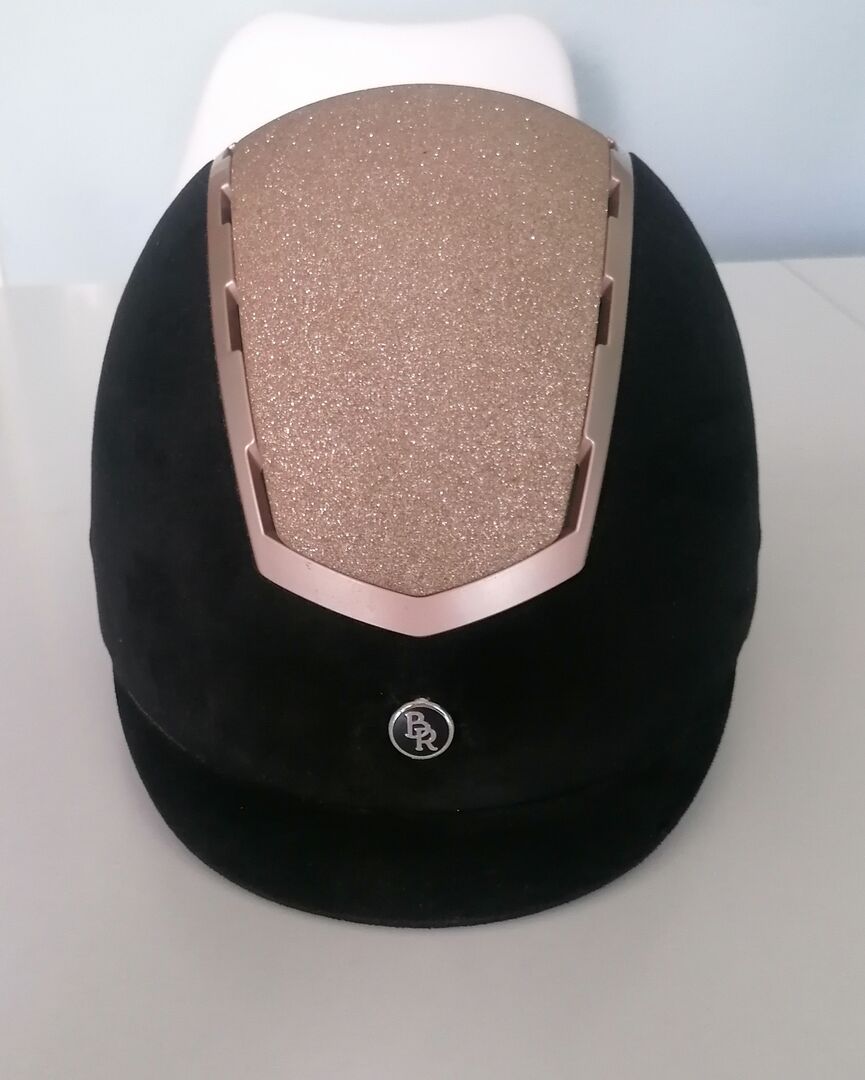 Schicker BR Reithelm mit goldenem Glitzer und rose goldenem Rand.
