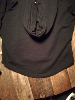 Schwarzer Hoodie mit Ton-in-Ton-Aufdruck vorne und orange Schriftzug auf den Ärmeln Mädchengröße M (entspricht etwas 146/152) Kaum getragen, sehr guter Zustand, fast wie neu