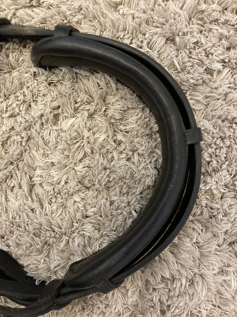 🖤schwedische Reittrense, geschwungener Stirnriemen mit schwarzen & grauen Steinen. Anatomisch geformtes Genickstück mit Ohrenaussparung und Polster für druckempfindliche Pferde. Nasen- sowie Kinnriemen weich gepolstert. Silberfarbene Beschläge.