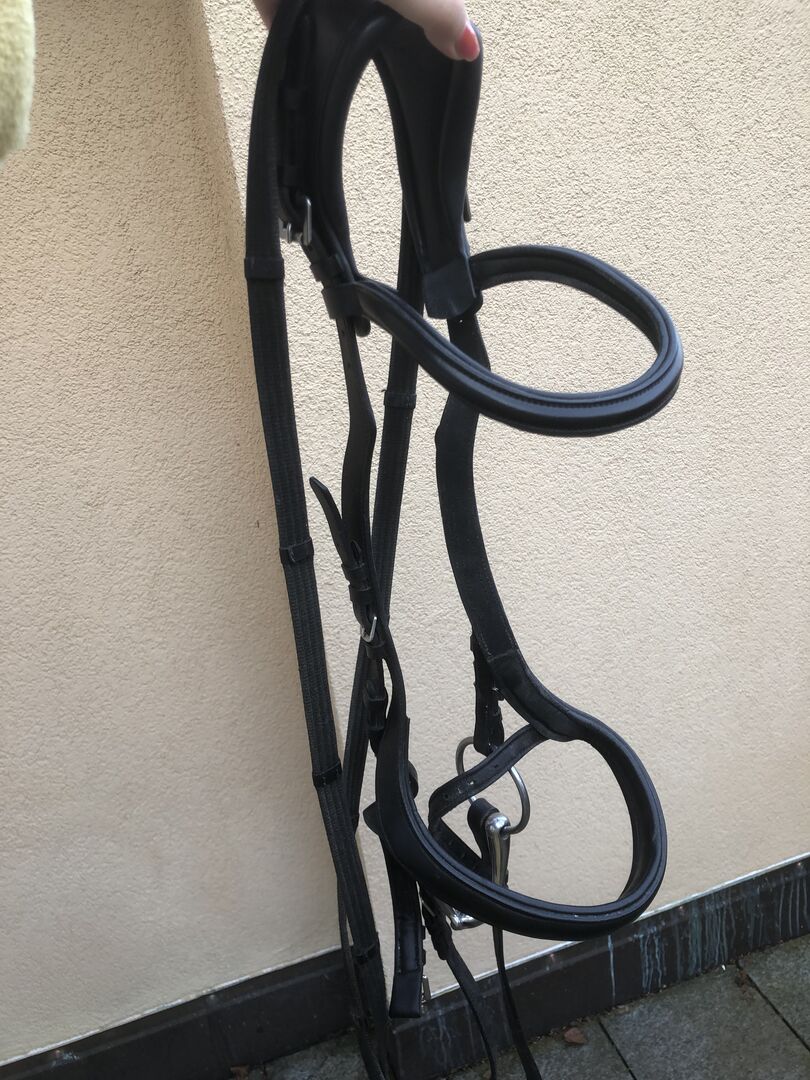 Sehr gut gepolsterte Trense in gutem Zustand. Grösse: Full Farbe: Schwarz Sehr edel ohne Backenstück und ohne Sperrriemen. Optional mit Gebiss- Grösse: 13.5