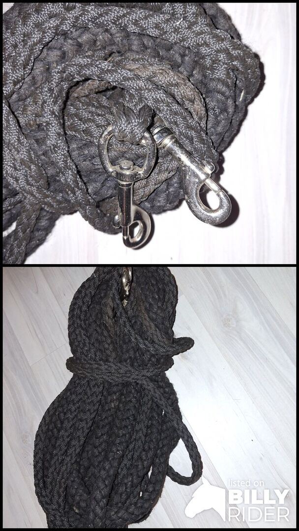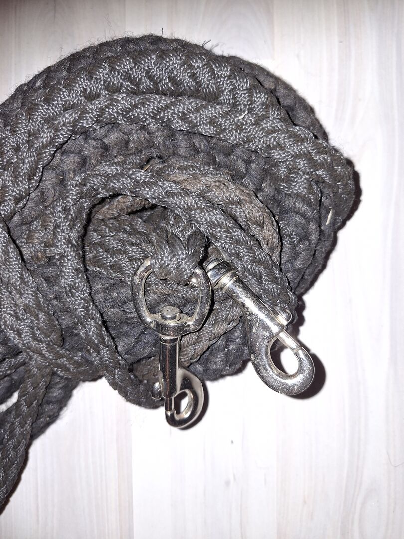 Biete ca.15 m langes Seil mit jeweils einem Karabinerhaken am Ende. Das Seil verdickt sich zur Mitte hin.