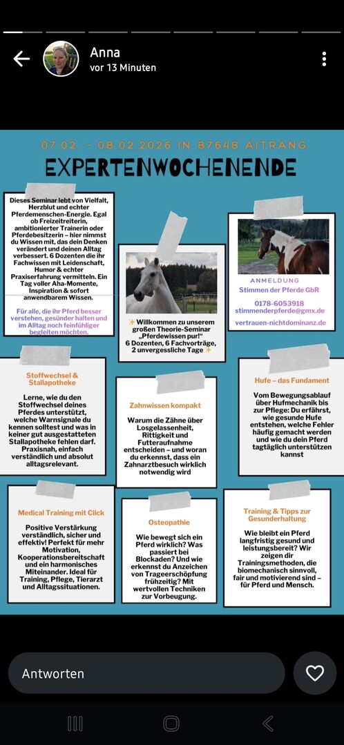 Lerne von Tierärztin, Therapeuten, Trainerinnen & Spezialistinnen Verstehe dein Pferd ganzheitlich Optimiere Gesundheit, Bewegungsqualität & Training ⚡ Zwei Tage. ⚡ Sechs Expertinnen. ⚡ Ein Ziel: Ein gesundes, zufriedenes Reitpferd.