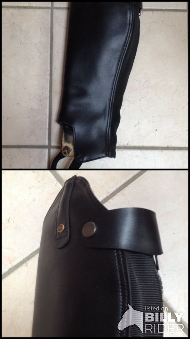 Schwarze Lederchaps von Sergio Grosso 44/35. Hinten neben dem Reißverschluss ca 2-3xm elastischer Bereich eingearbeitet. Sehr guter Zustand