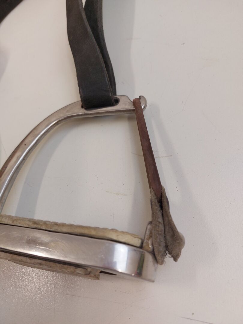 Biete ein paar Sicherheitssteigbügel mit Lederriemen (schwarz).