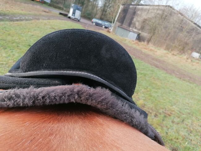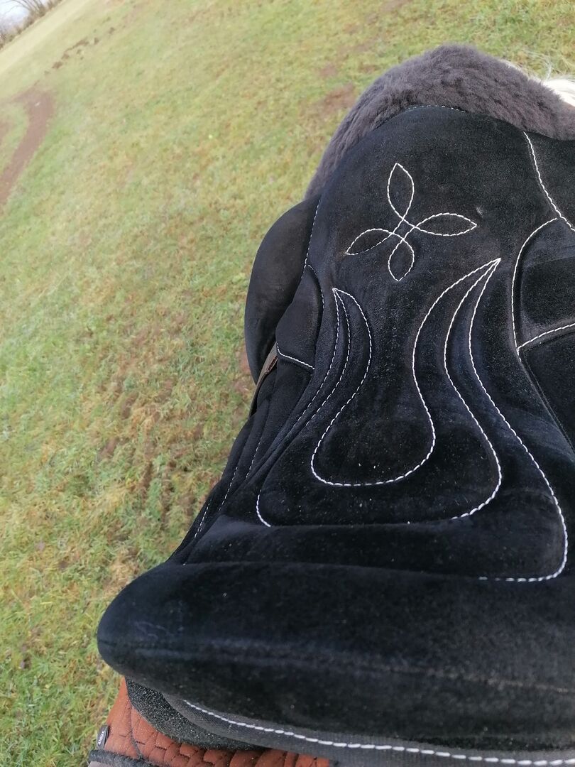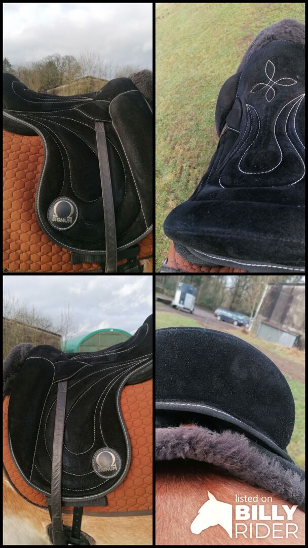 Ohne Klettkissen, auf Wunsch mit den Steigbügelriemen auf dem Foto, ebenfalls von Signum.