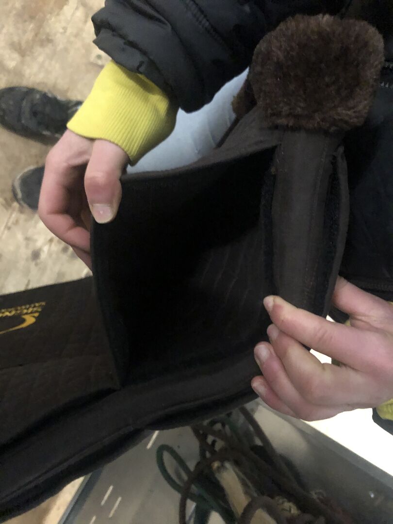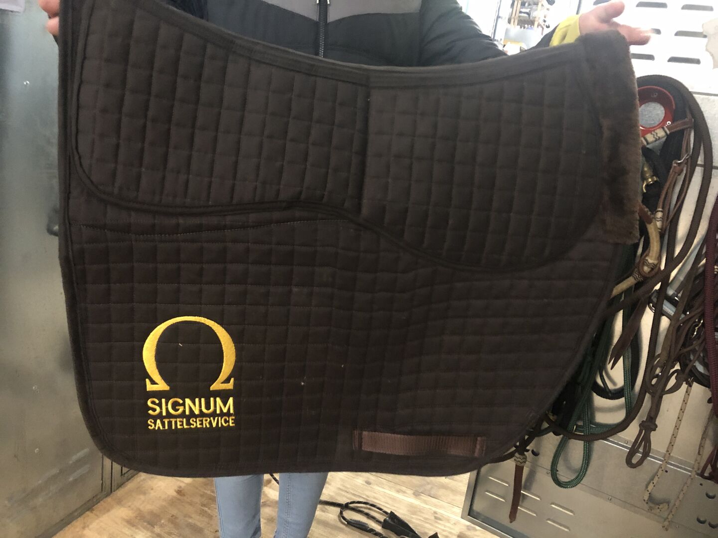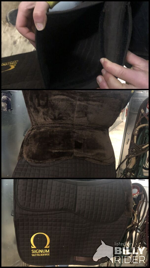 Verkaufe meine ungenutzte Signum Satteldecke. Sie hat Polstertaschen und ist an der Innenseite mit Kunstfell gepolstert.