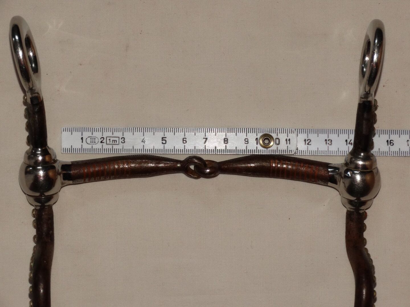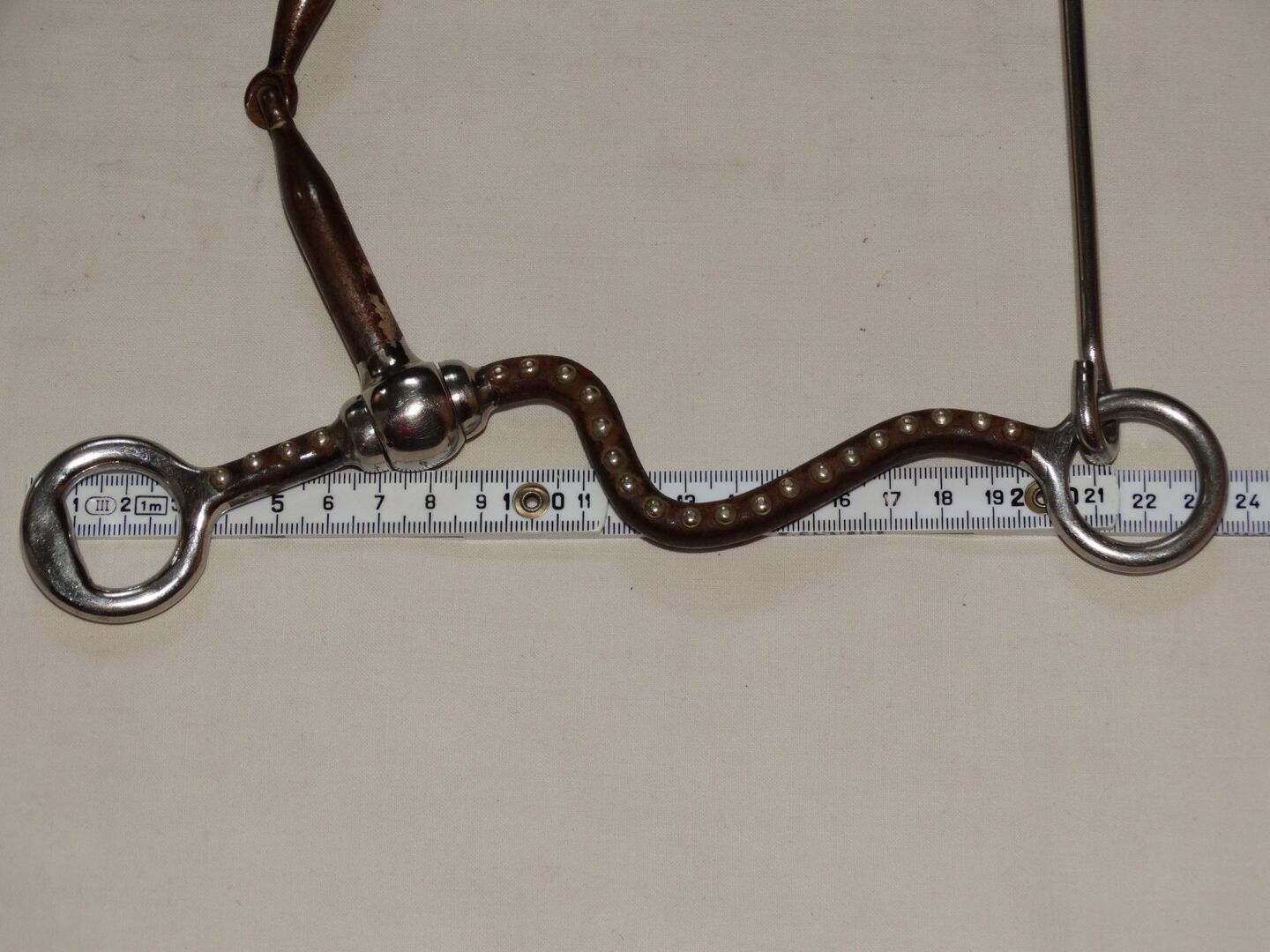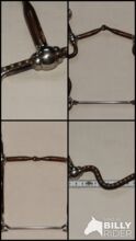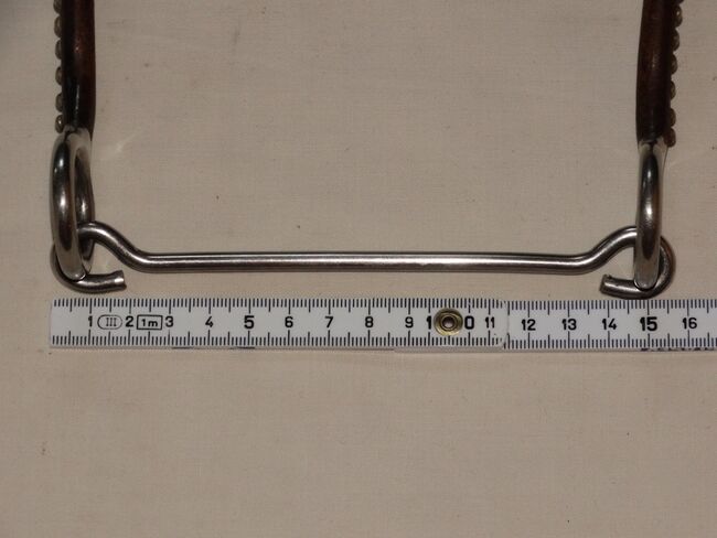 Gebrauchtes Snaffel Bit with Shanks abzugeben. Größe 13,5cm. Lange Sweet Iron Anzüge mit Dots & Abstandhalter. Ist meinem Kleinpferd leider zu Groß. Zustand bitte den Bildern entnehmen, danke!