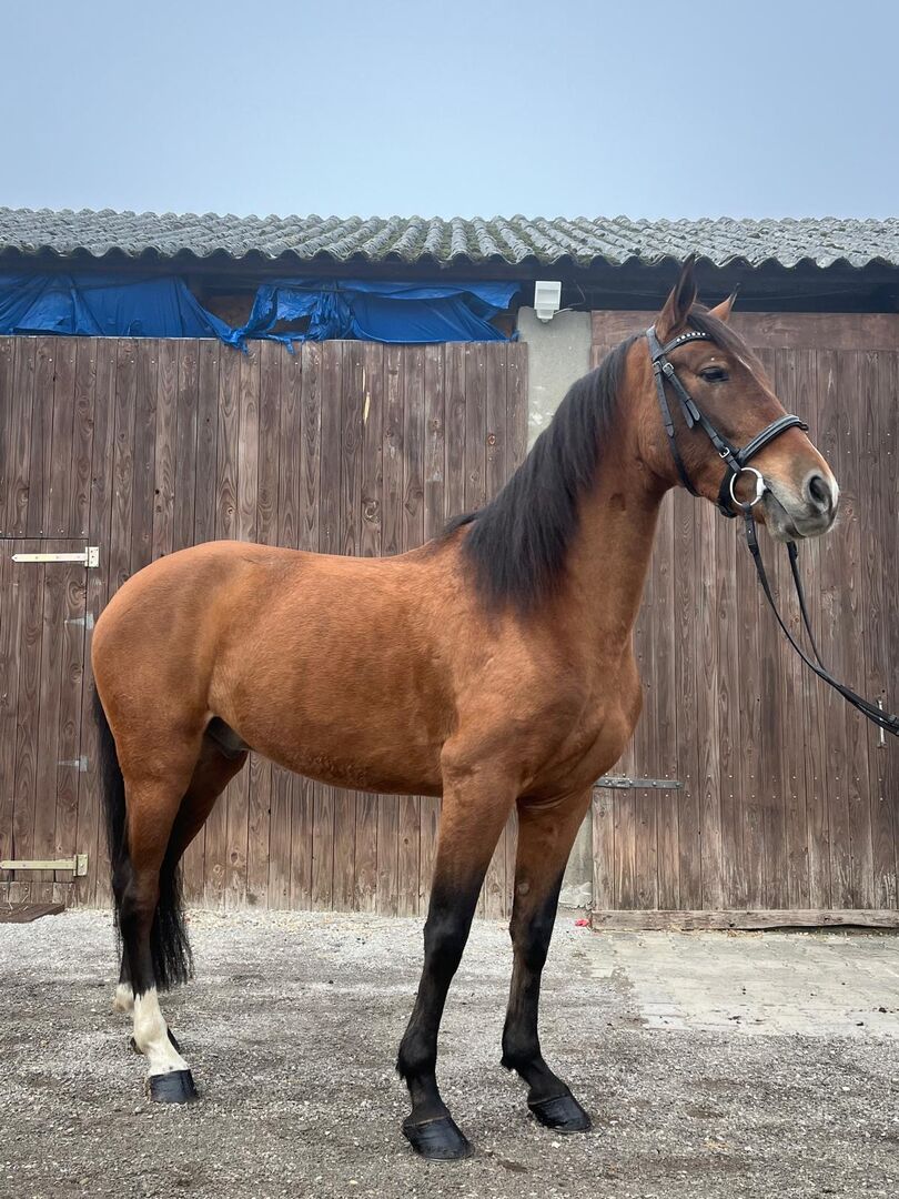 Zum Verkauf steht ein Febuar 2021 geborener Wallach mit einer aktuellen Größe von ca. 148 cm.