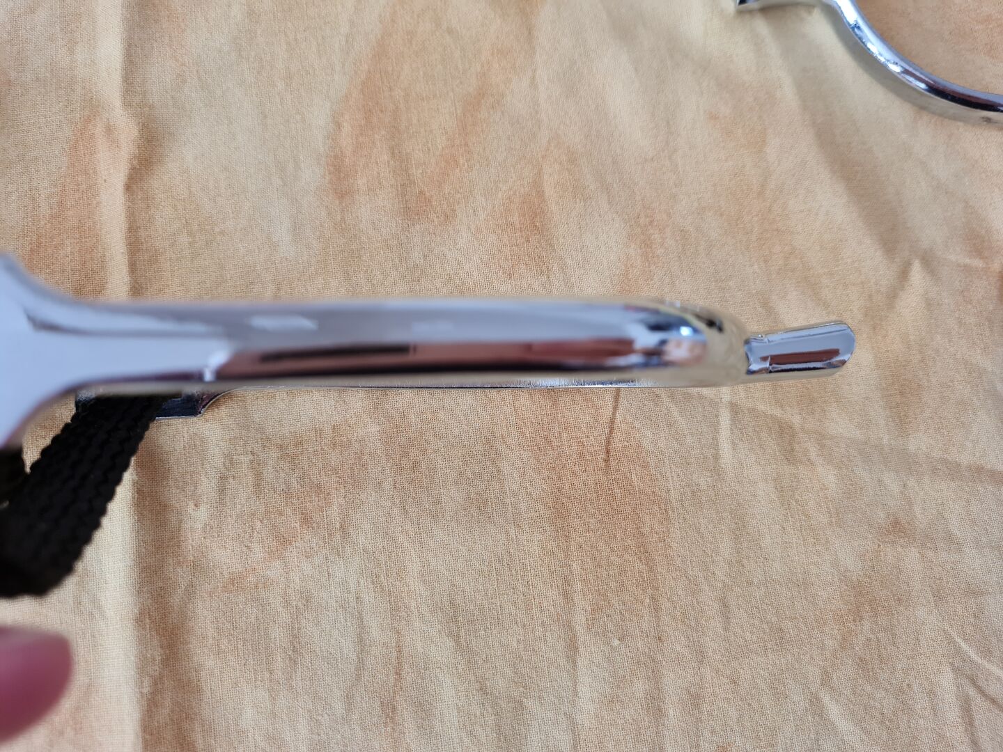 Sporen von Loesdau, Metall mit 2,5 cm Dornlänge, ganz leicht nach oben/unten geneigt, am Ende gerader Schnitt -> siehe Fotos. Die Sporenriemen sind aus geflochtenem Textilmaterial, also sehr gut auf jede Größe anpassbar.