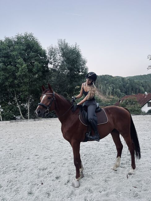 Dieser talentierte Wallach eignet sich hervorragend für den Dressursport sowohl auch zum Springen und zeigt bereits vielversprechende Ansätze allerdings erst ein Jahr angeritten dementsprechender Ausbildungsstand. Er ist brav im Umgang, gut erzogen und hat ein angenehmes Temperament, das ihn zu einem idealen Partner für ERFAHRENE Reiter macht.Da er doch hin und wieder kleine Hirngespenster hat gebe ich ihn nur in GUTE und ERFAHRENE Hände.