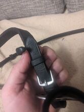 Selten verwendetes Sprenger Hackamore in einwandfreiem Zustand auf Solibel Zaum (Achtung kein Reithalfter dabei, aber wie auf den Bildern ersichtlich gibt es die Möglichkeit, ein Reithalfter durchzuziehen), alle Steinchen vom wunderschönen Stirnriemen erhalten, inklusive Zügel ohne Martingalstopper (ein kleines Riemchen ausgerissen, siehe Bild).