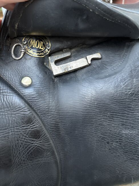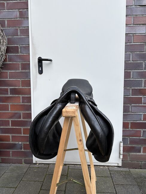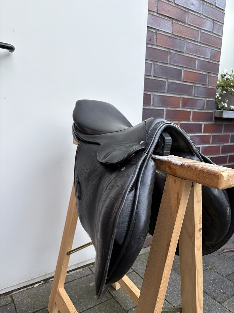 Die Sitzgröße liegt bei ca. 16”–16,5” (gemessen anhand der Fotos). Die weiteren Maße sowie die Kammerweite sind ebenfalls den Bildern zu entnehmen. Der Sattel lag zuletzt auf einem normal gebauten Pferd und bietet dem Reiter eine angenehme Sitzposition sowie guten Halt beim Springen.