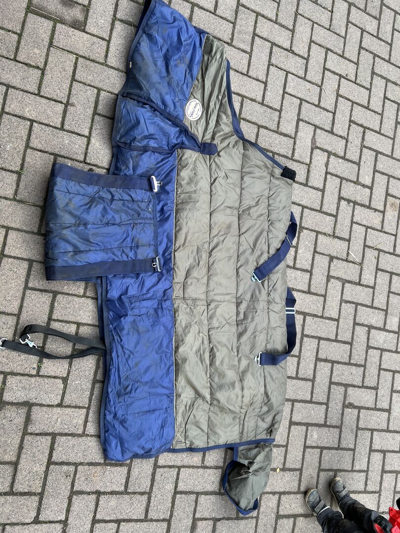 Biete gut erhaltene Stalldecke mit Bauchlatz und Beingurten in 125. Hat ein kleines Loch, auf Wunsch Nähe ich dies noch.