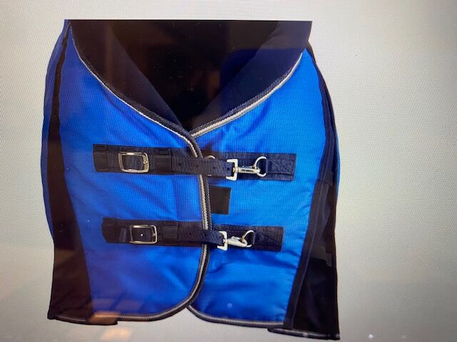 Die Stalldecke ist neuwertig, wurde nie benutzt. Grösse 155 cm wärmender Rückenteil 2 Schnallen mit Schnellverschluss im Brustbereich Farbe Königs- und Dunkelblau Kälteschutz für geschorene Pferde, die in der Box stehen. Ideal in der Übergangszeit oder im Winter für ungeschorene Pferde.