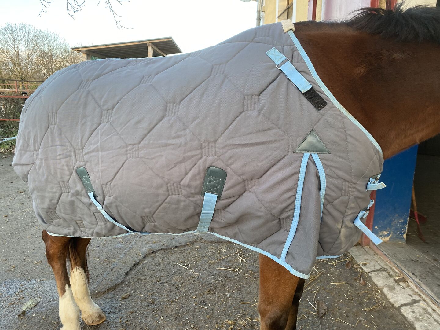 Gut erhaltene Stalldecke Thermostar Premium ca 150g von Waldhausen. Die Decke ist nicht wasserdicht. Zustand siehe Bilder. Die Decke liegt hier auf einem 161cm Stockmaß VB.