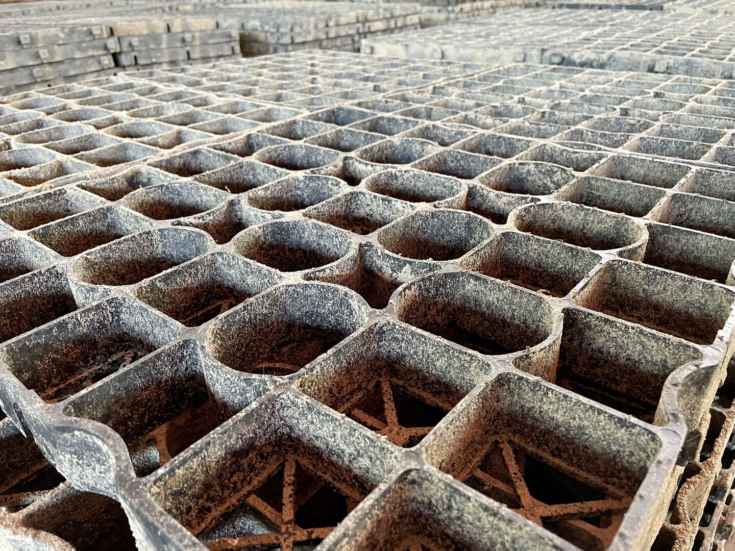 Insgesamt 1.200 qm, gelagert und abholbereit auf 40 Europaletten Maße: 50 x 50 cm / 4 cm Höhe Wunderbar geeignet für Ställe und Außenreitplätze. Siehe auch: https://www.ridcon.de/de/ridcon-progrid-40/