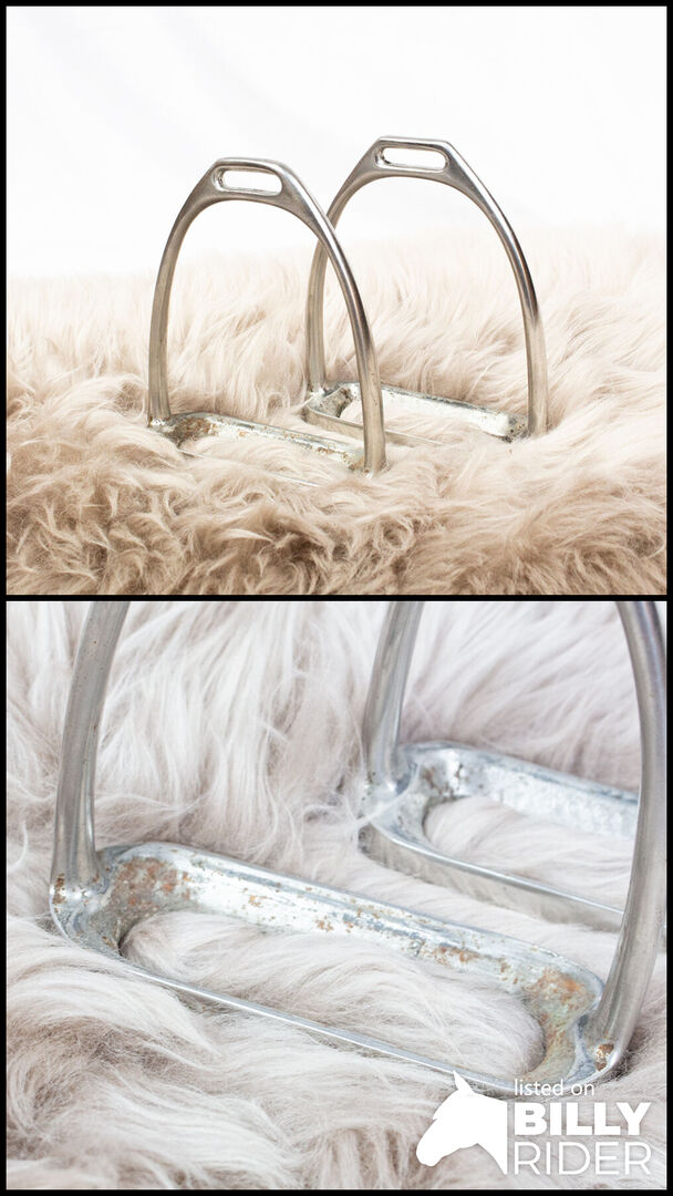 Die Steigbügel sind der perfekte Begleiter im Alltag. Die Trittfläche ist 12 cm lang und 5 cm tief. Sie sind silber. Die Steigbügel haben starke Abnutzungen, sowie Rot und die Gummieinsätze fehlen. Zum Angebot des Anbieterslaunch