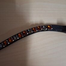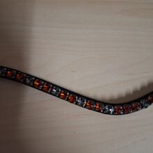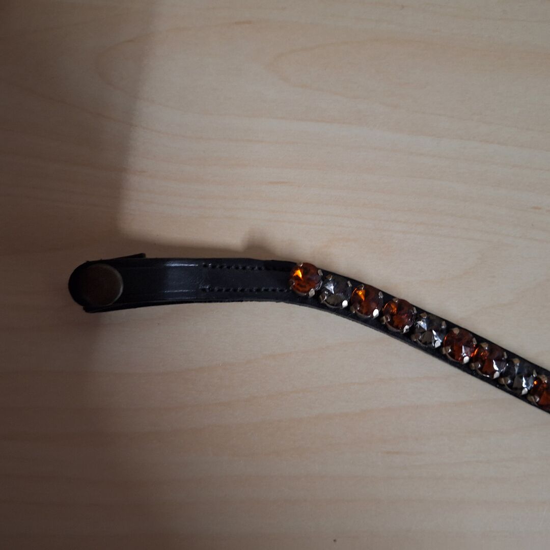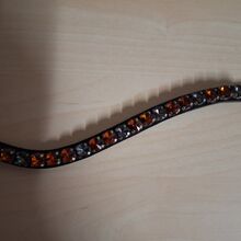 Neuer Stirnriemen in der Größe WB. Die Lederfarbe ist Schwarz. Die Steine wurden mit klaren Nagellack bepinselt, sodass sich Schopfhaare nicht darin verfangen können.