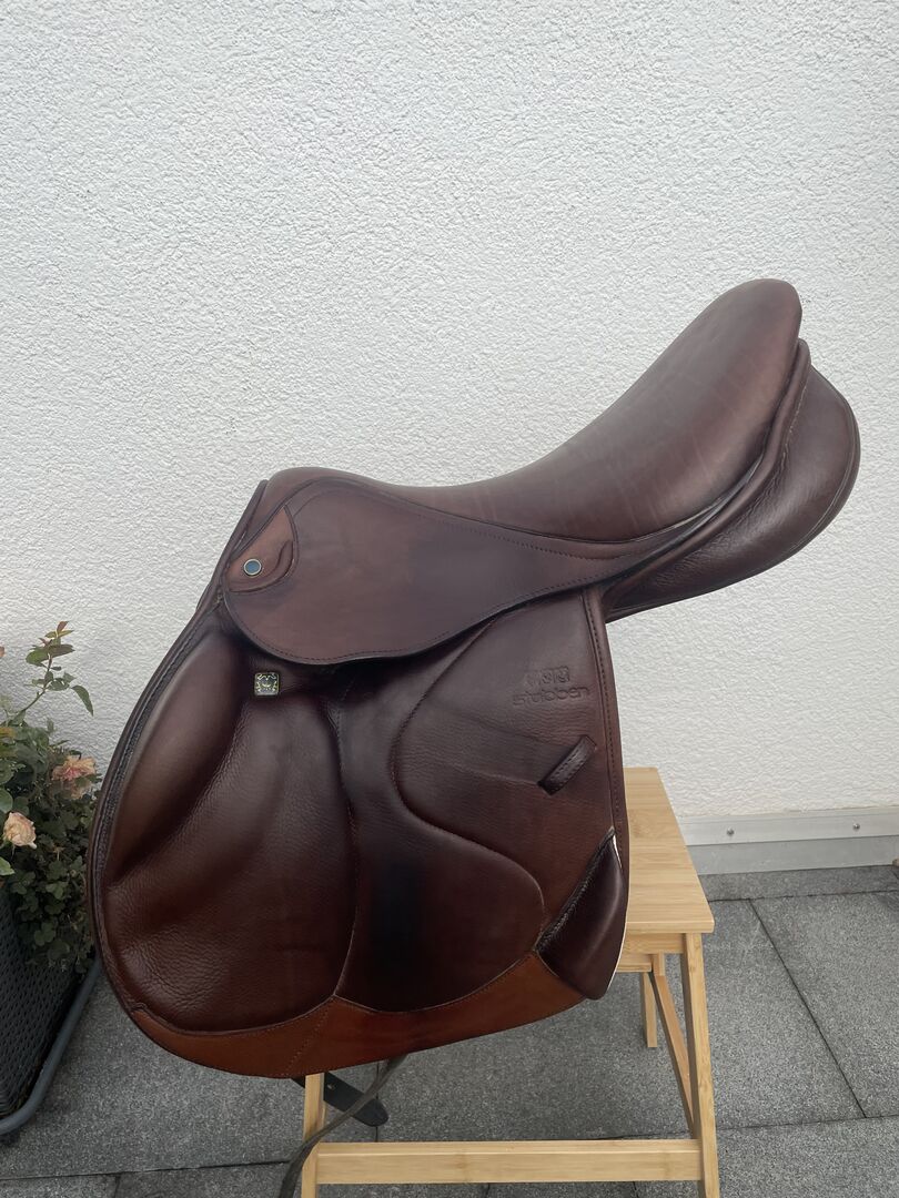 Ein sehr schöner spring Sattel von Stübben. Neupreis lag weit über 4000 Euro. Ein paar Gebrauchsspuren aber guten Zustand. Die Kissen sind letztes Jahr noch neu gemacht worden. Sitz ist 17,5 Zoll.