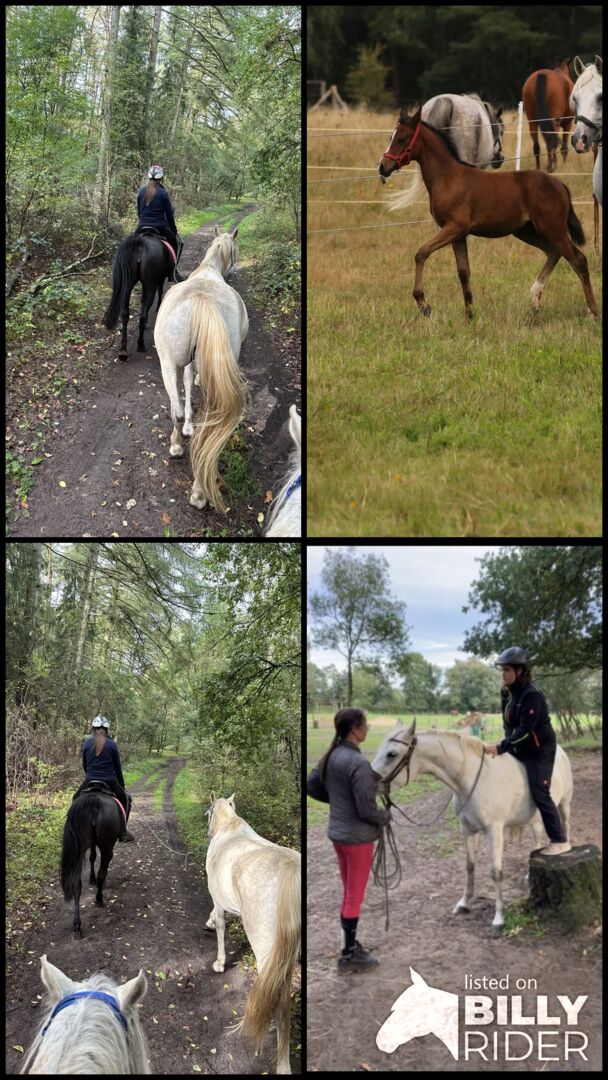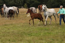 Parissa ist im Herdenverband aufgewachsen. Ganzjährig auf großer Fläche draußen. Zwischen Warmblütern und Arabern mit täglichen Menschen Kontakt und Mineralfutter Sie wurde in Ruhe und Spielerisch auf das anreiten vorbereitet. Incl Spaziergänge und Handpferd im Gelände, bis 10 km Runden im Trab . Dabei lief sie trittsicher ohne guckig zu sein oder Sätze zu machen Sattel/ Trense und Reitergewicht hat sie kennen gelernt. Hufe machen mit Flex, durchs Wasser gehen, Planen und Stangentraining. Decke, selbst Hirschläuse machen ihr keinen Stress und lässt sie sich mit Panzertape runter holen. Die Bilder als Handpferd sind 3 Jährig Das mit Fohlen 5 Jährig aus dem letzten Jahr