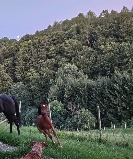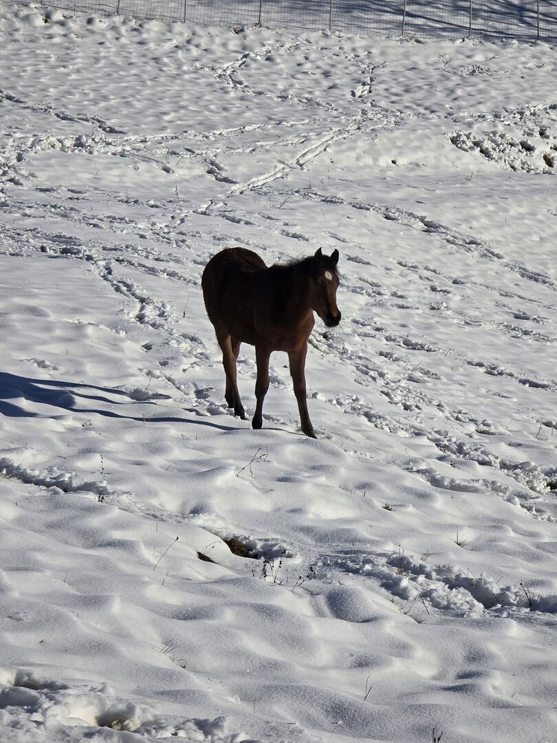 Sie lernte das Fohlen-ABC mit Liebe und Geduld kennen: - Halftern - Führen - Anbinden - Putzen - Tierarzt - Schmidt und ist bereits 2x im Hänger für 10-15 min gefahren.