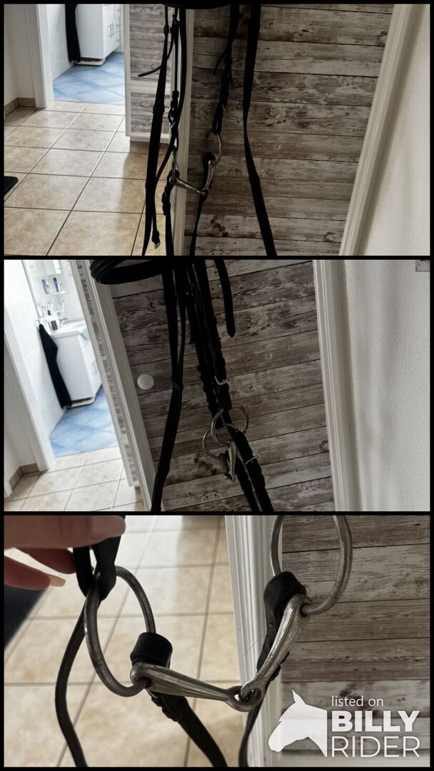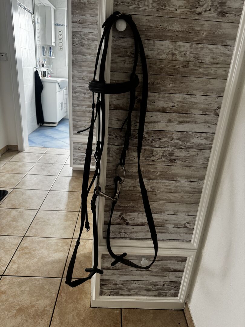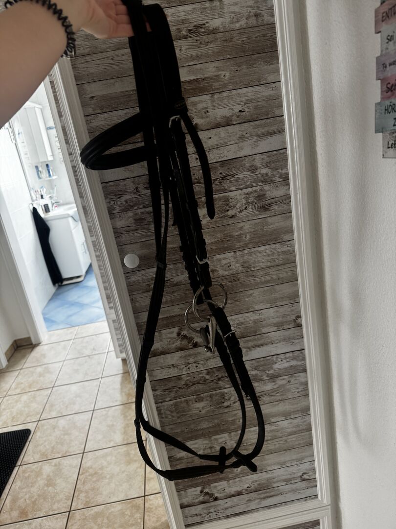Trense in Gr. Cob Mit Stirnriemen, Gebiss in 12.5cm und zügeln. (kein Nasenriemen!) Gut erhalten. Privatverkauf daher keine Garantie oder Rücknahme. Versand gegen Kostenübernahme möglich.
