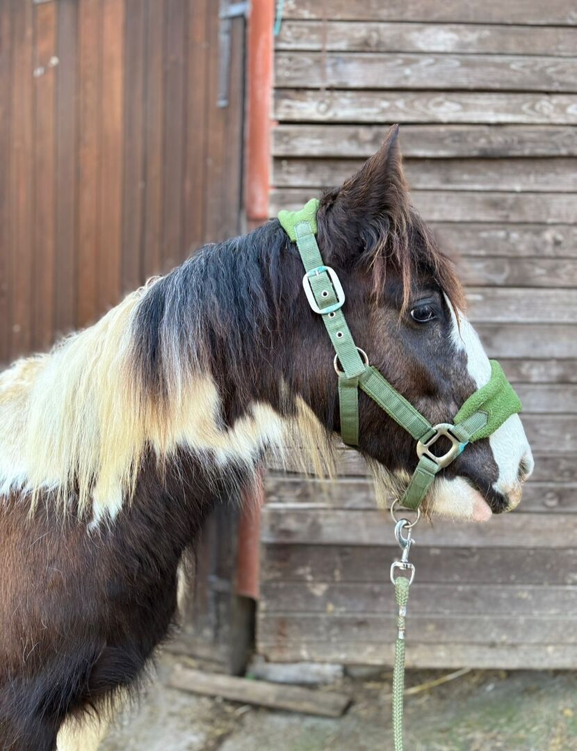Moana vom Königsee, hübsche Tinker Scheckstute, geb. 05.02.2025, geimpft, regelmässig entwurmt, Equidenpass vom ICS mit eingetragener Abstammung väterlicherlicher Seite, z.Zt. knapp 1,30m, geschätzes Endmass ca. 1,35/1,40 m, kennt Umgang mit Kinder durch meine Arbeit in der Reitpädagogik, schöner Behang und schöne zweifarbige Mähne hat sie, wächst im Offenstall in der Herde auf, bei ersthaftem Interesse sende ich gerne Bilder der Eltern zu, bitte keine Händler und keine Wochenendkuschler/Ausflügler