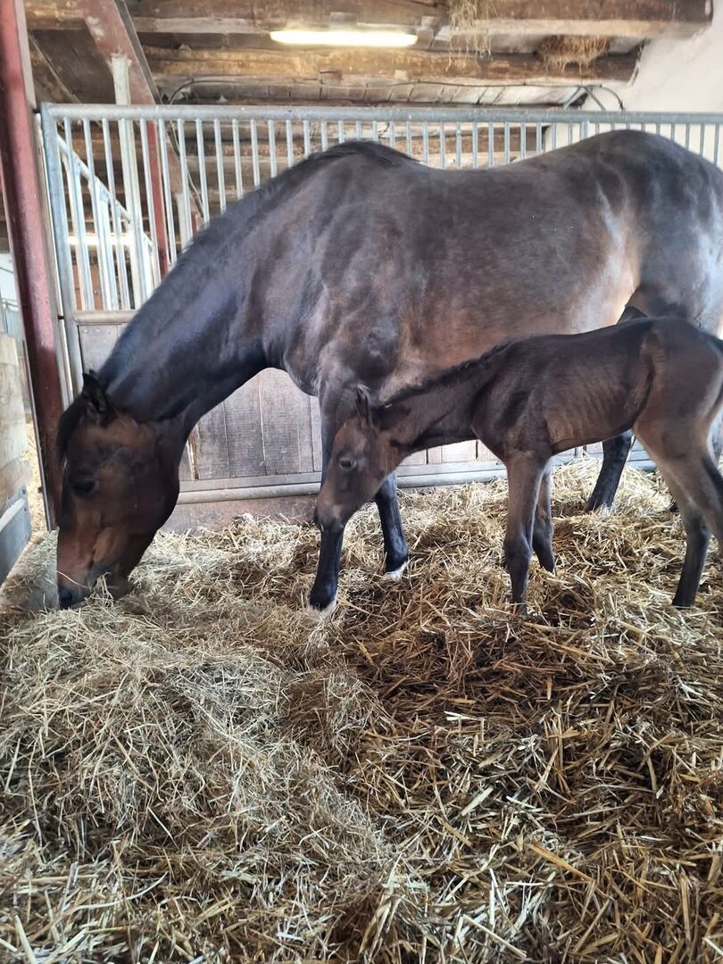 Bizzy Lizzie - bezaubernde Quarter Horse Stute, 2014 geboren mit einem Stockmaß von 160 cm, sucht als reitbare Zuchtstute wegen Aufgabe der Zucht ein neues Zuhause. Die Stute hat einen einwandfreien, lieben Charakter, ist brav im Umgang und menschenbezogen. Hat keine Unarten und ist absolut cool. Nach einem Weideunfall 2020, bei der sie sich die Schulter verletzt hatte, wurde sie nur noch freizeitmäßig geritten. Geht ganz lieb ins Gelände. Besitzt eine sehr gute Westerngrundausbildung. In den letzten 2 Jahren wurde sie nur zur Zucht eingesetzt, kann aber wieder antrainiert werden. Lizzie hat derzeit ein ganz tolles Stutfohlen von TFR A Wisely Dream bei Fuß, welches eventuell mit erworben werden kann. Auf Wunsch kann die Stute für 2026 noch von einem Wunschhengst belegt werden. Die Stute ist 5-Panel n/n. Besitzt eine solide Allround Abstammung.