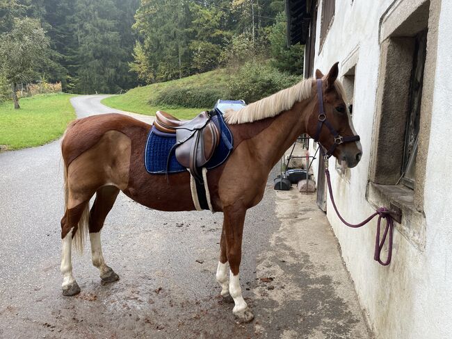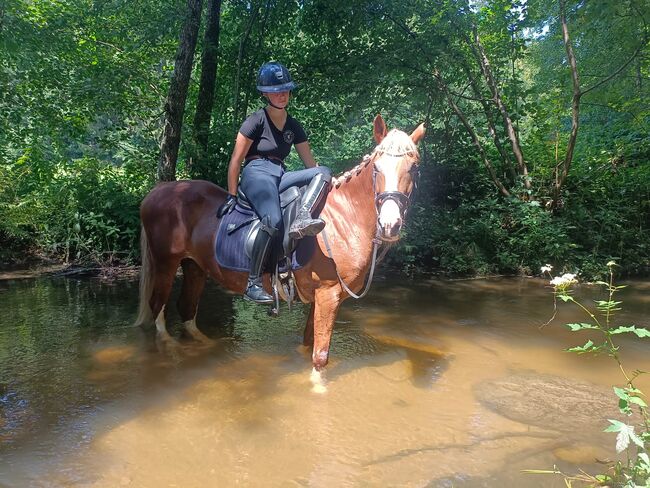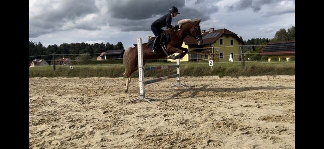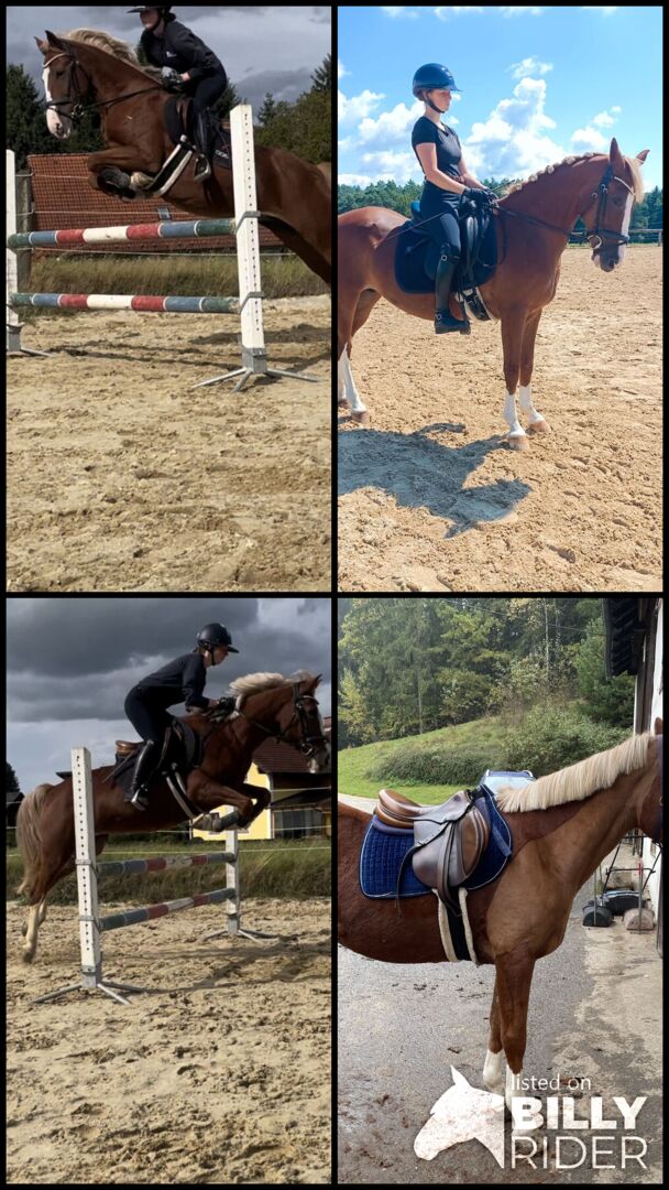 Zum Verkauf steht unsere 12- jährige ungarische Ponystute Bella. Sie ist 148cm groß und somit perfekt für Kinder geeignet, aber auch kleine Erwachsene deckt sie gut ab. Bella ist ein sportliches und leistungsbereites Freizeitpony. Sie geht sehr gerne ins Gelände und ist dabei stets unerschrocken und gelassen. Auch Dressur und Springen auf A-Niveau stellen keine Herausforderungen dar. Bella kennt es aber auch longiert zu werden, von kleineren Kindern, Anfängern oder auch mal ohne Sattel geritten zu werden. schmiede- &verladefromm, beißt nicht, tritt nicht, geimpft Kennt Boxenhaltung mit tägl. Koppelgang aber auch Offenstall, sehr verträglich in der Herde, gesund, kopfklar, keine Unarten, hatte bereits Fohlen perfekt für Einsteiger, Anfänger und Kinder