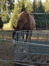 Er darf in keine Box auch nicht Nachts, er fängt das Weben dann an und ist mehr als unglücklich. Wir haben es nicht ausprobiert uns wurde das gesagt und das haben wir uns zu Herzen genommen. Er steht bei uns 24/7 draussen in einer kleinen Truppe, mit frei zugänglichem Heu und ist damit sehr zufrieden. Er war bei uns nie krank, frisst alles, kann lachen, lernt schnell und will dies auch, er will unbedingt was tun, deshalb wird er nur verkauft, weil ich sehe das ihm das fehlt.