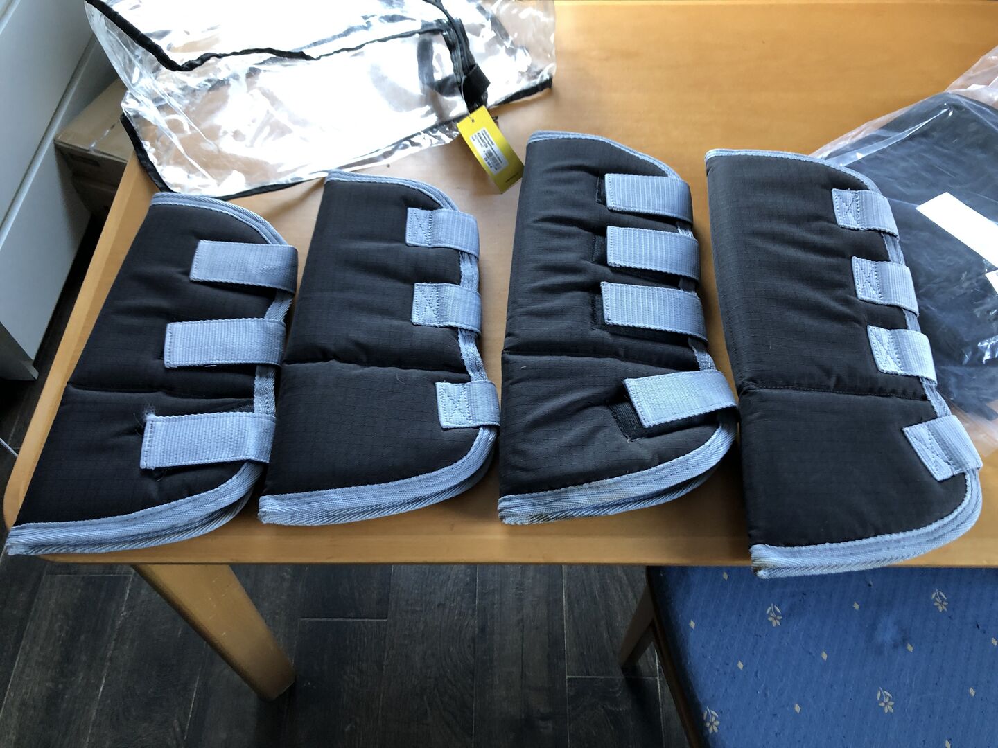 Goldhorse Transportgamaschen WB (wir habe; ein irisches Warmblut, stämmige Beine) und ein Schweifschutz von Felix Bühler (unbenutzt). Die Transportgamaschen wurden nur 2 mal genutzt.