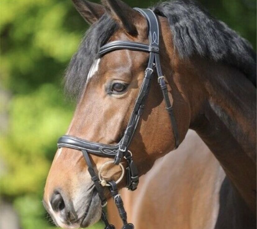 Schwarze Trense mit integrierten Sperrriemen in der Größe Vb/Cob. Passt jedoch auch WB. Die Trense wurde einmal benutzt, da ich auf braun umgestiegen bin. Daher keine Mängel, wie neu. Bei Equiva für 105€ gekauft. Mit weißen Ziernähten. Versand gegen Übernahme möglich. Preis ist Vhb. Paypal vorhanden.