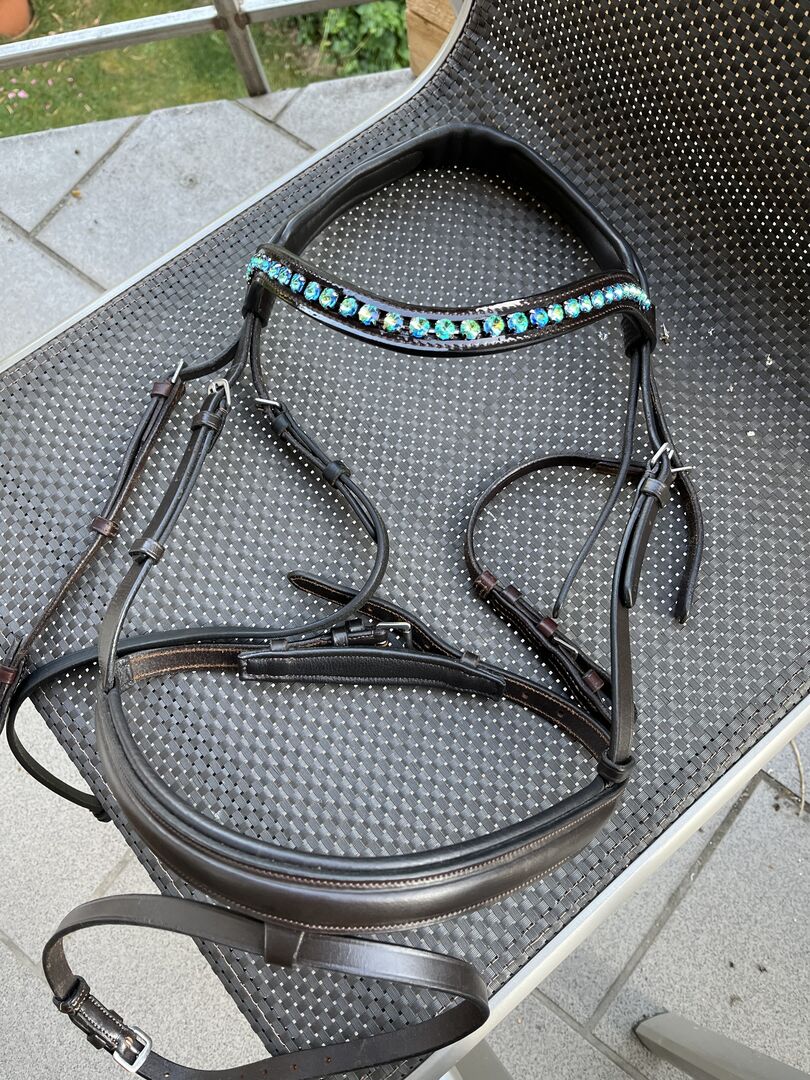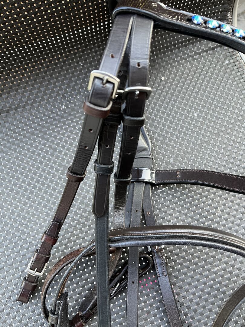 Biete eine Trense in gr.WB ohne Zügel an und schwarzen Kehlriemen an ,da mir der braune abhanden gekommen isz