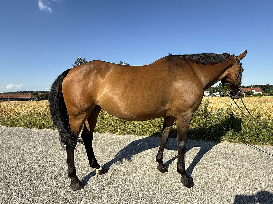 Roxy ist kerngesund, gut erzogen und zuverlässig unterm Sattel – ideal für fortgeschrittene Reiter mit Herz.