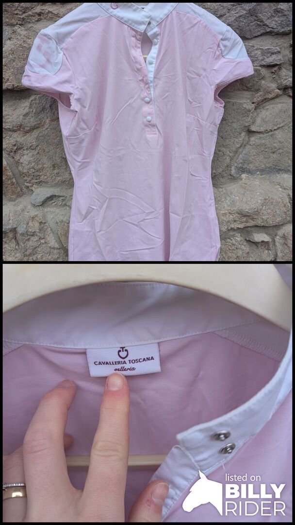 Verkaufe eine tolle Turnierbluse der Marke Cavalleria Toscana in rosa. Größe L. Auf dem rechten Arm ist das Logo zu sehen. Die Bluse hat einen super tollen Stoff und ist mega angenehm zu tragen.