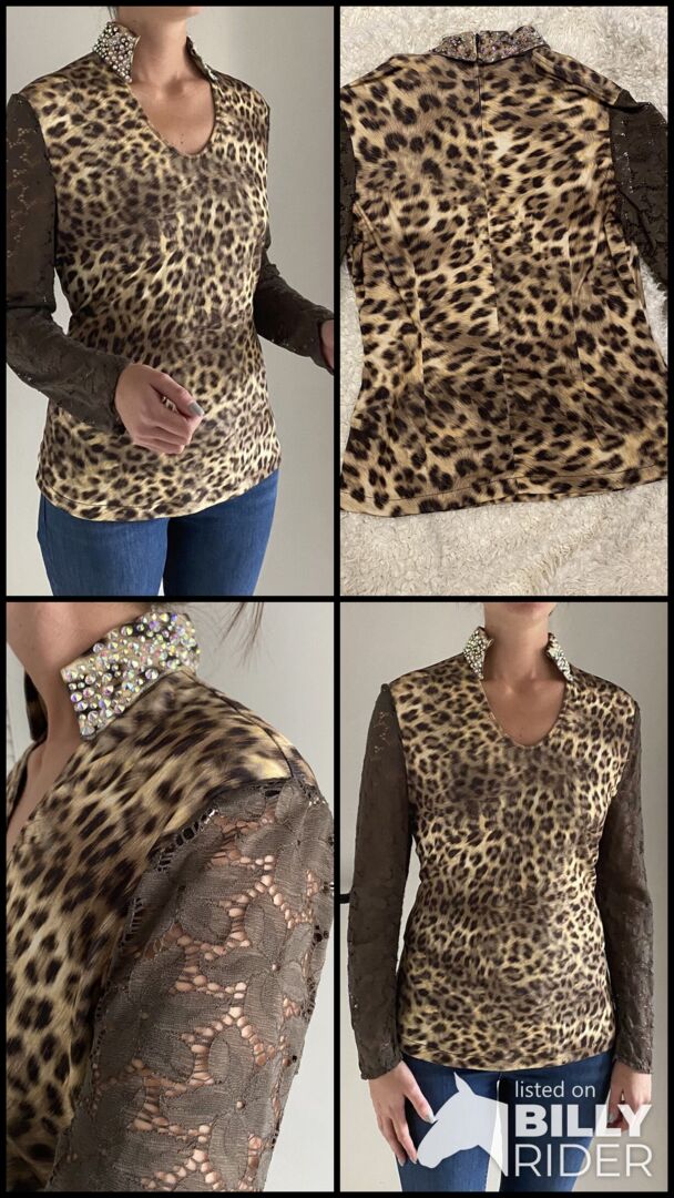 Showoberteil in Leoprint und Spitzenärmel in braun/beige. Am Kragen mit viel BlingBling :)